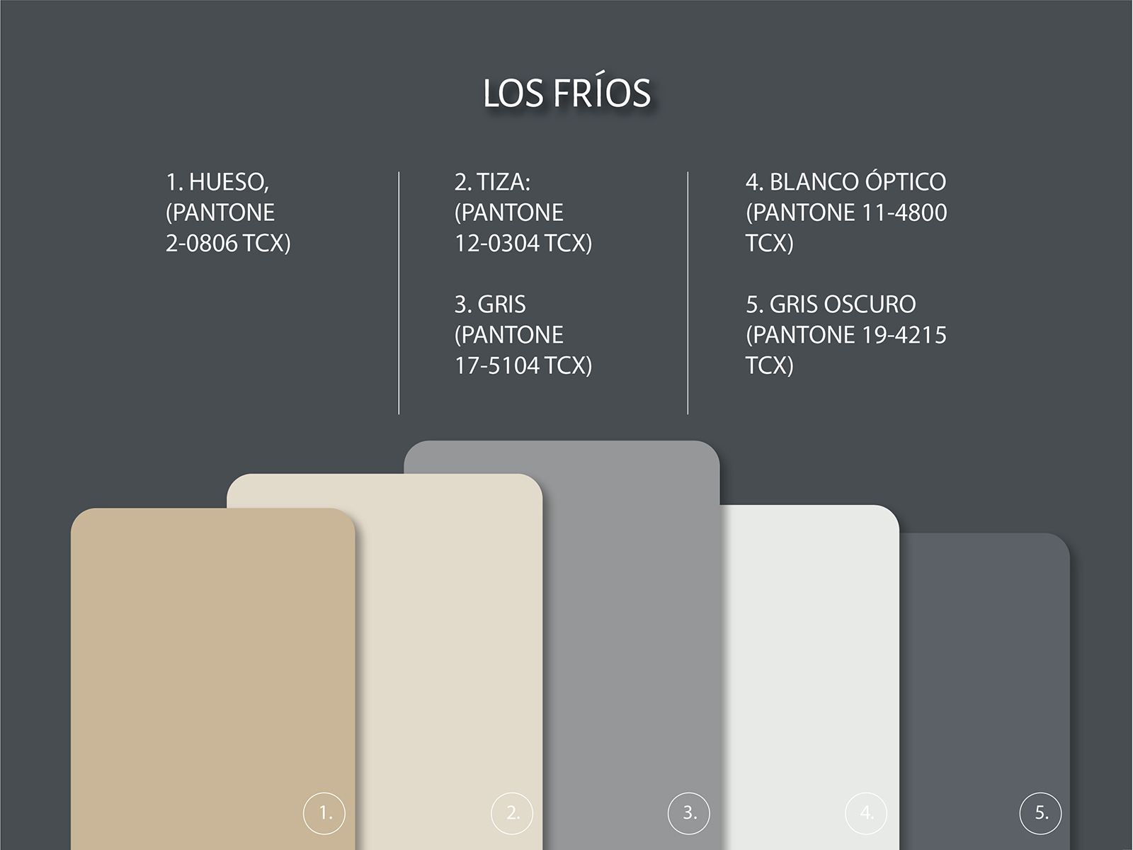 LOS FRÍOS: Frescos y elegantes, para looks minimalistas y elevados. Sirve como paleta transestacional. Amarillos desaturados, grises pálidos. Tonos fríos aplicados en materiales suaves y envolventes.