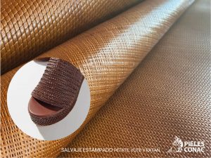 Pieles teñidas en tambor con acabados de anilina en los tonos clásicos coñac, sin re pigmentación. Lisos o con grabados de trenzados. Aparecen pieles sin teñir en tonos naturales, más sustentables, para usar el color original del material. Elegancia sustentable.
