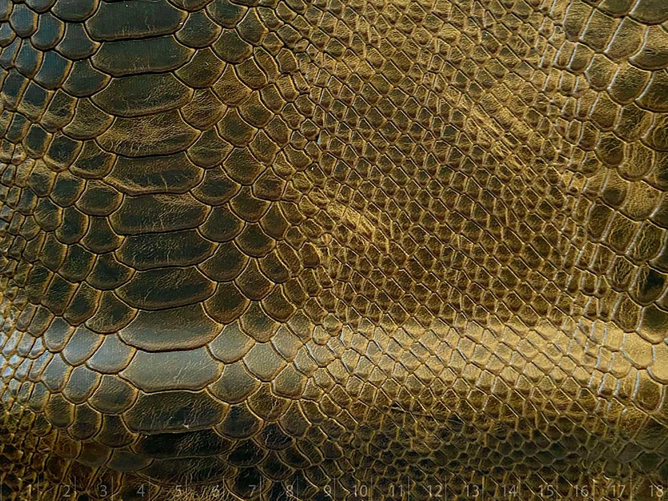 Piel pulida, acabada con parafinas y aceites, grabada con placa Anaconda, terminación semi brillo, mano semi armada.