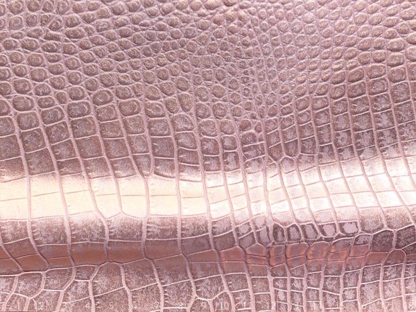 Cuero plena flor, pigmentado, grabado con placa Caiman, con efecto metalizado difuminado en las crestas.