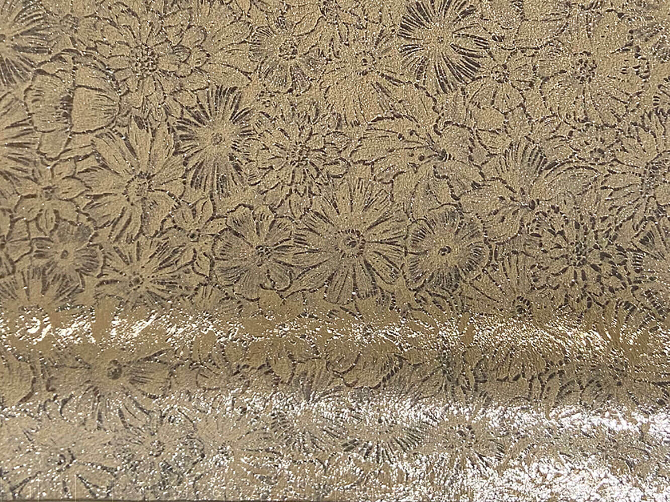 Descarne anobucado. Frisa corta y suave. Con folia transparente flor metalizado.