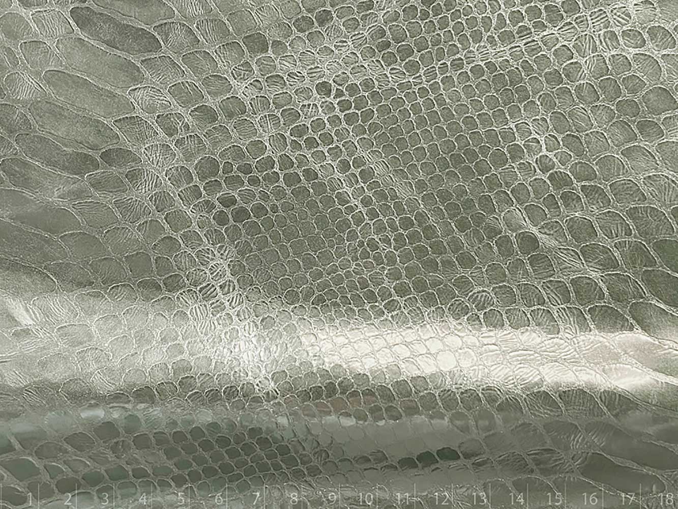 Piel pulida, metalizada, con patrón metalizado más intenso de reptil.
