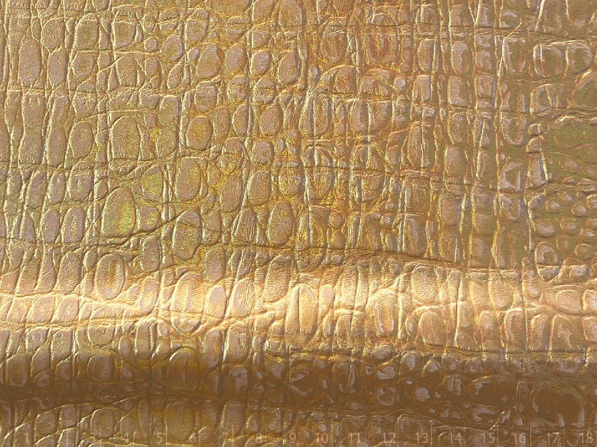 Piel pulida, metalizada, grabada, con efecto de bitono en las crestas, brillo medio.